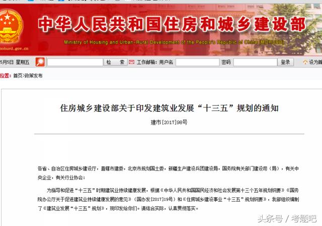 2017年4月,住房和城鄉建設部印發《建筑業發展“十三五”規劃》(以下簡稱《規劃》),內容涵蓋工程勘察設計、建筑施工、建設監理、工程造價等行業,以及政府對建筑市場、工程質量安全、工程標準定額、建筑節能與技術進步等方面的監督管理工作?!兑巹潯分荚谪瀼芈鋵崱兑庖姟?、闡明“十三五”時期建筑業發展戰略意圖、明確發展目標和主要任務,推進建筑業持續健康發展。